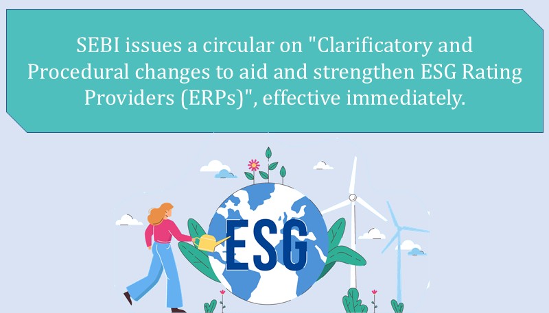 SEBI issues a circular on “Clarificatory and Procedural changes to aid and strengthen ESG Rating Providers (ERPs)”, effective immediately.